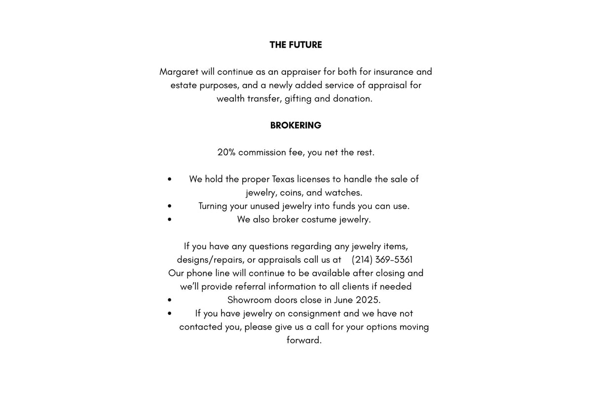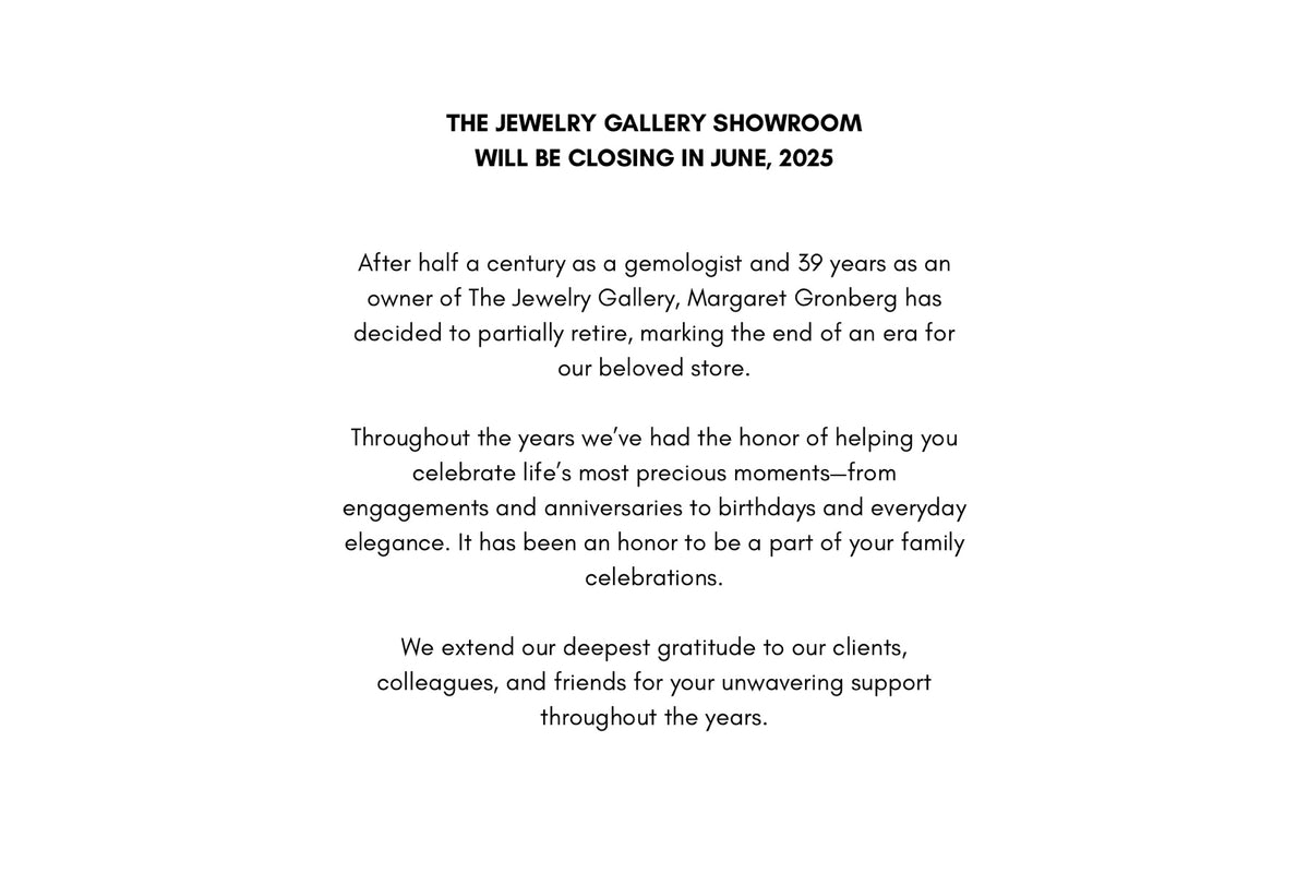 After half a century as a gemologist and 39 years as an owner of The Jewelry Gallery, Margaret Gronberg has decided to partially retire, marking the end of an era for our beloved store.